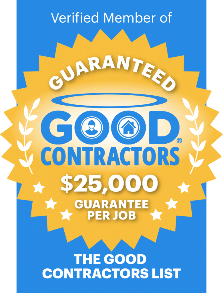 As a verified Good Contractors member, many of our projects are backed by a $25,000 third-party guarantee per job. This adds an extra layer of accountability beyond traditional warranties.